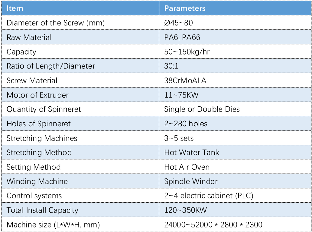 The Sino-Extrusion machinery provide polyamide monofilament extrusion machines which adopted the main machine with optimized length to diameter rated screws; the whole system with PLC controlled, easy operating and punctual controlling!